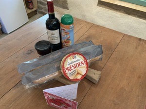 Packs typically includes a baguette or more, some cheese, Jam, fruit squash and of course a bottle of wine. Welcome packs are made to your preferences with an average price being agreed and working to that budget taking into account local offers available at the time.